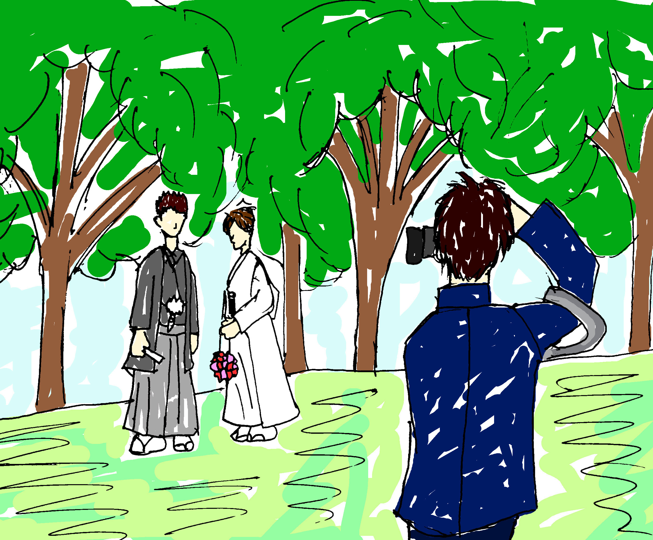 のんびり日差しを感じながら二人のイメージに合わせてシャッターを押します。