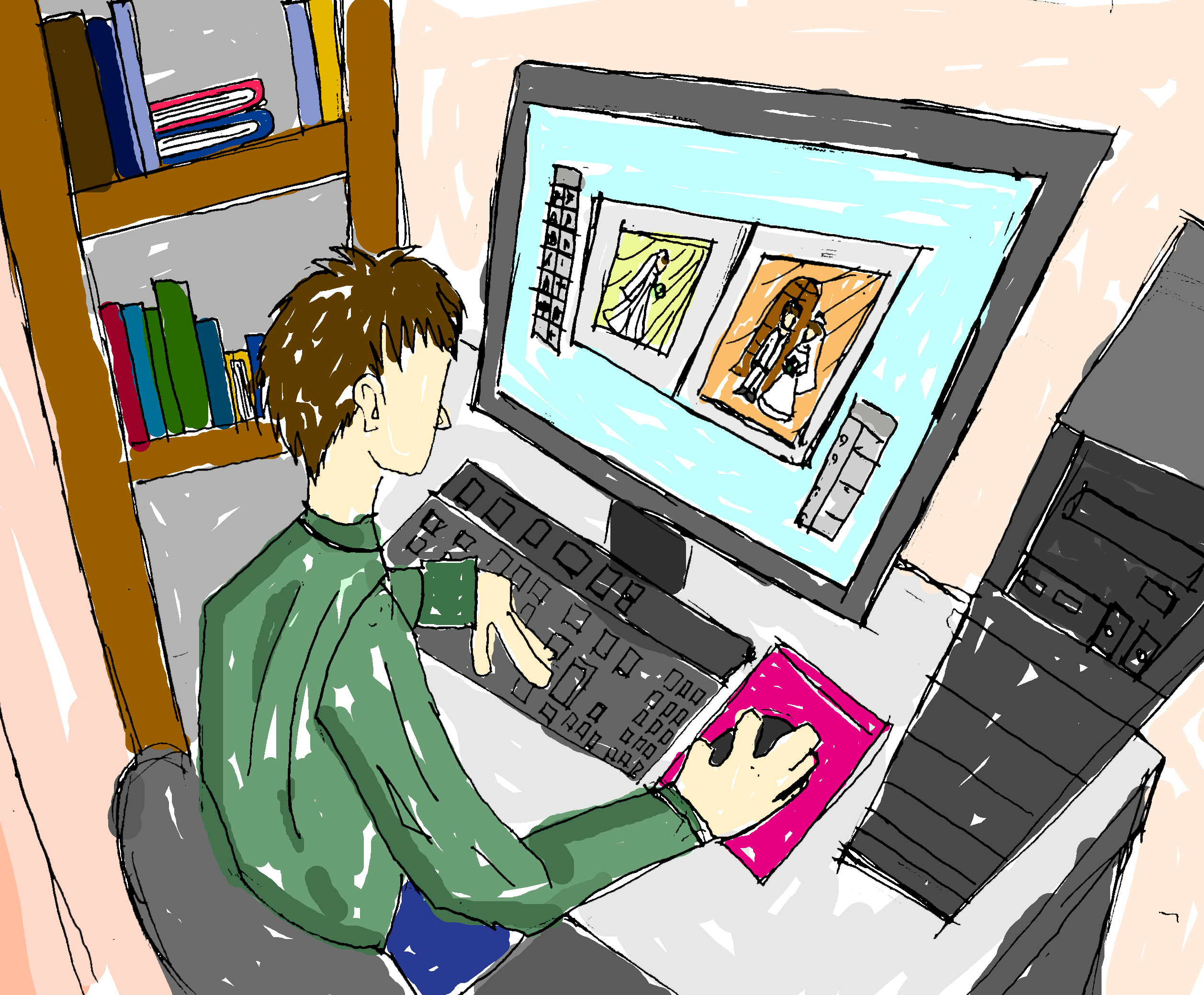 前撮影、結婚式当日で撮影した写真を、選別したり、色を直したりします。